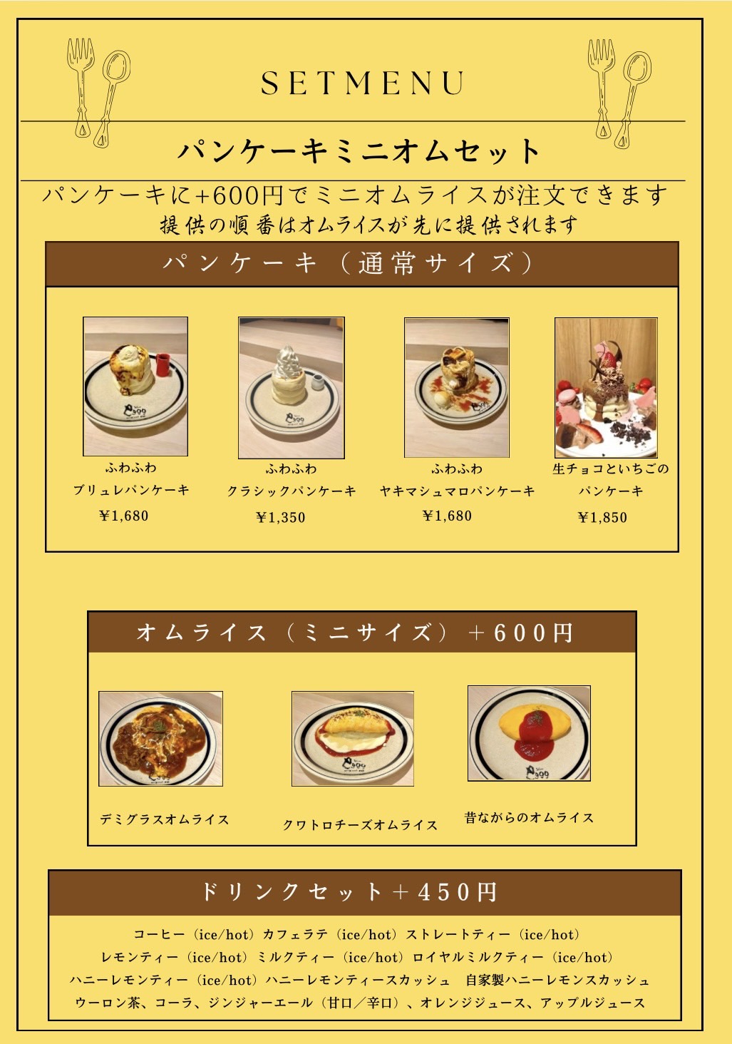 パンケーキメニューはこちら。