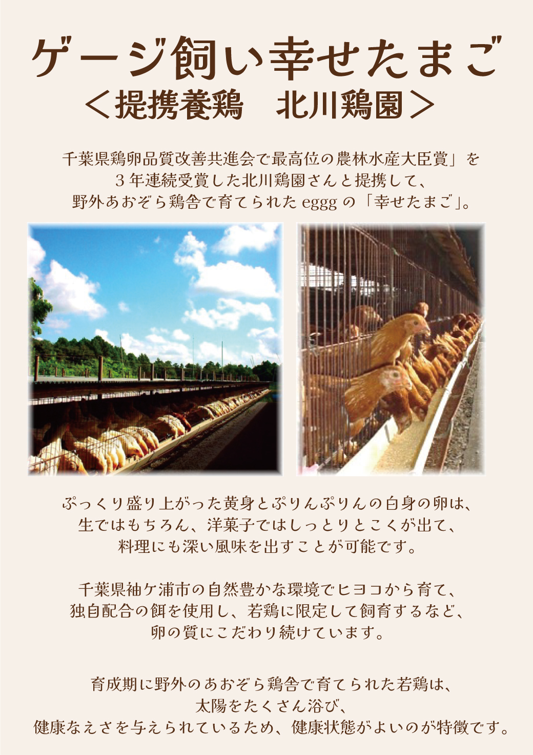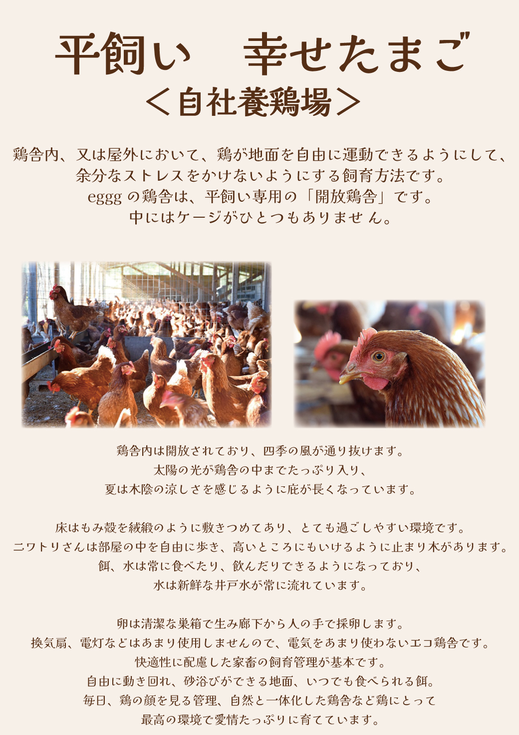 平飼い幸せたまご:1個¥50税抜ゲージ飼い幸せたまご:1個¥35税抜 ※卵の大きさに関わらず一律の料金になります※梱包代:個数に限らず一律別途+¥150いただきます
